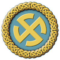 - the replacement of Christian ceremonies by pagan equivalents; the most favoured pagan deity being the sun, as can be seen from the flag of the faith movement